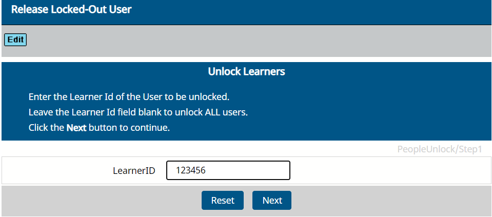 1.) Login into AbilityLMS and select Administration | Release Locked User. Then enter the LearnerID into the field and press NEXT. This allows the learner an opportunity to log into the learning system again.