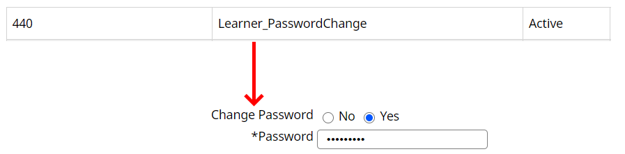 3.) If the password change is intended to be temporary, enable the Learner_PasswordChange data item and set the CHANGE PASSWORD option to YES. When the Learner successfully logs into the system, they are prompted to change the password.